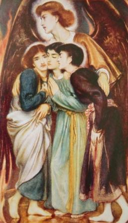 These verses are not included in the canonical Daniel. There, the young men fall into the furnace and the narrative suddenly focuses on Nebuchadnezzar in film it would be called a POV shot – his perception, his alarmed reaction, and his words: ‘Did we not cast three men bound into the midst of the fire?’