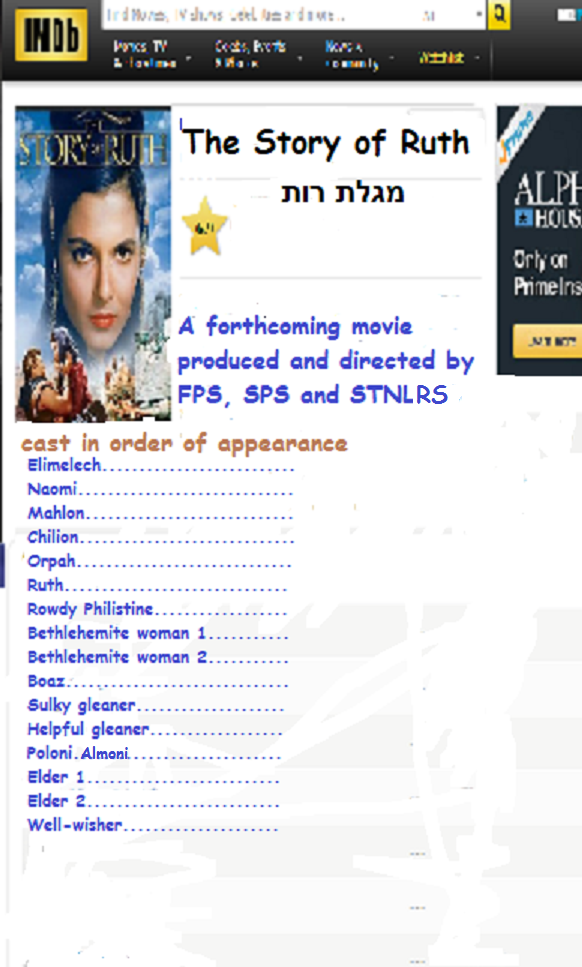 If you think we should use midrash to flesh out Orpah’s story, we can show her liaison with a character who appears in my cast list as Rowdy Philistine.
