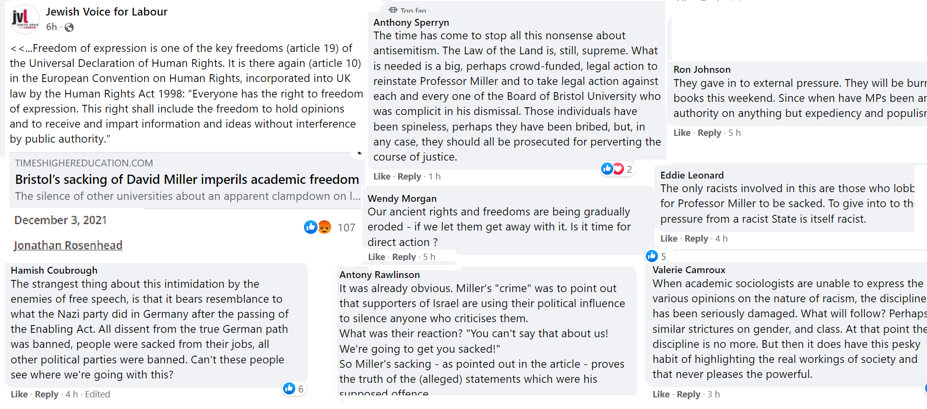 It soon became apparent that they would defend anyone accused of antisemitism, for example Jackie Walker, Pete Willsman and Chris Williamson. Later on they expressed solidarity with Professor David Miller when he was sacked by Bristol University and with many more: any Labour, Trade Union or student officer who was considered antisemitic became a protegé of JVL (Shaima Dallali is a recent case in point). They blamed Zionists but, mistakenly, they considered non-Zionists, such as Jon Lansman, the founder of Momentum, to be a Zionist, because he acknowledged the problem of antisemitism in Labour under Corbyn. This applied tenfold to David Baddiel, particularly in the wake of his book ‘Jews don’t Count’.