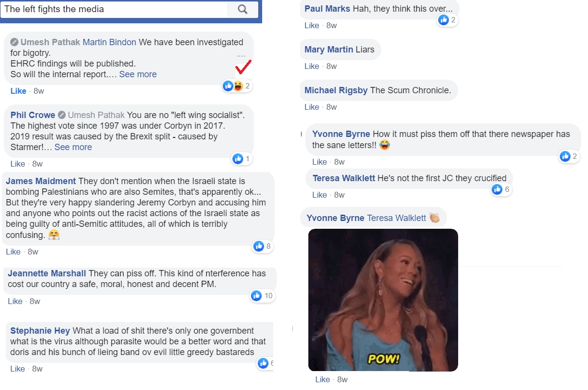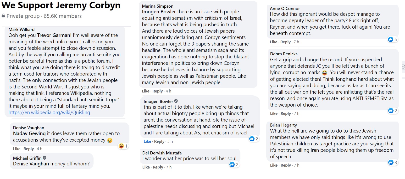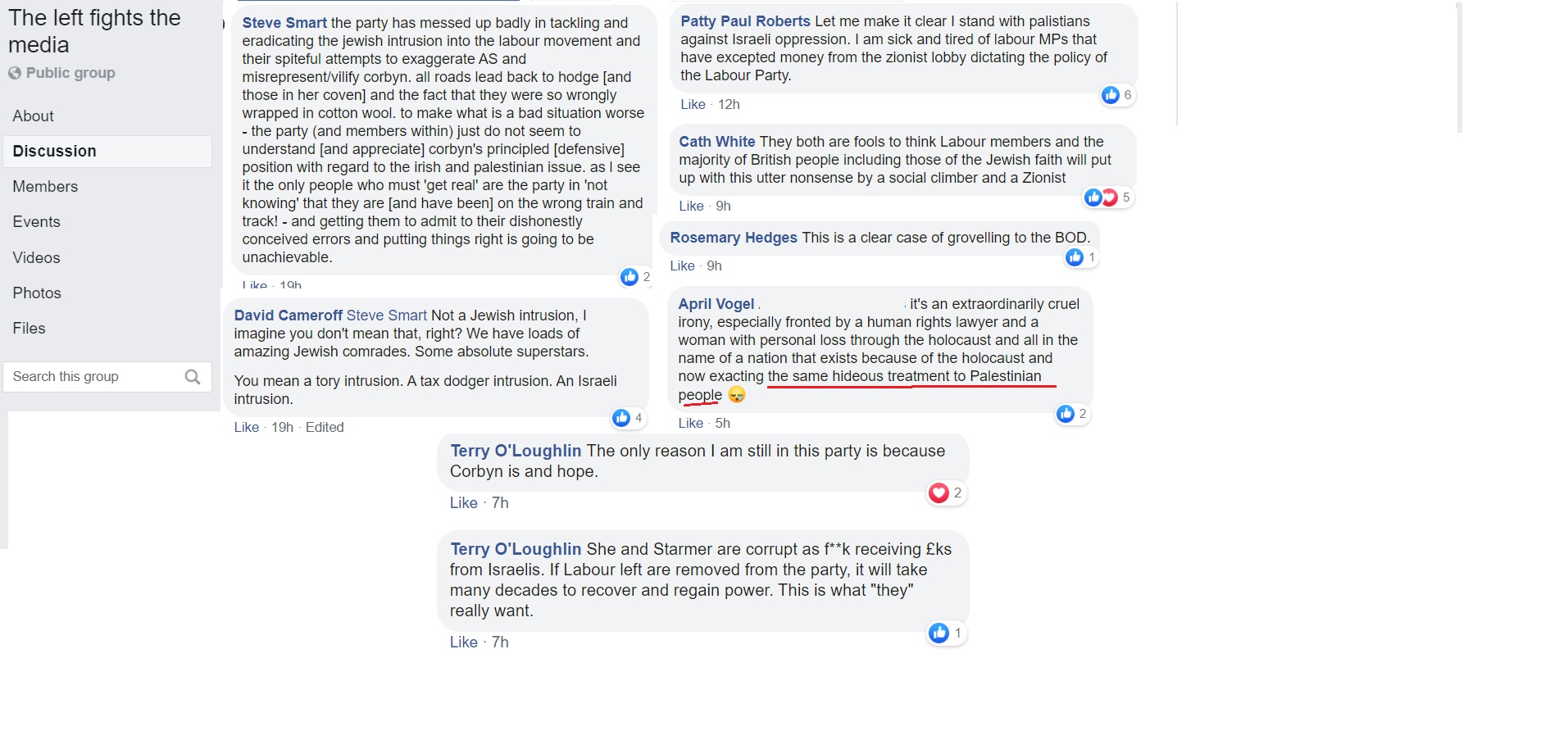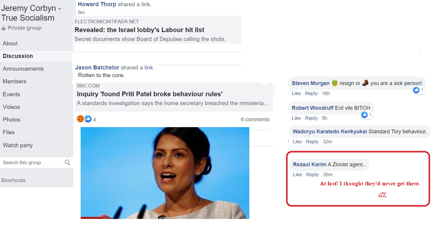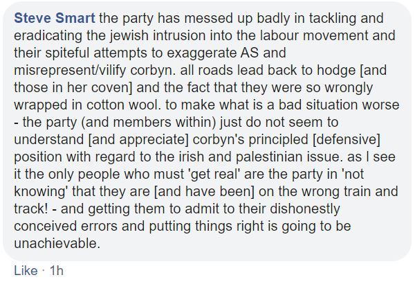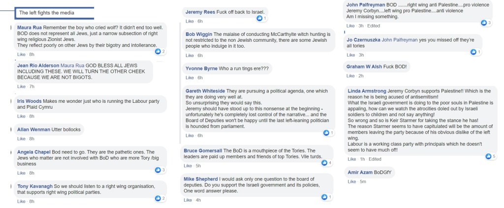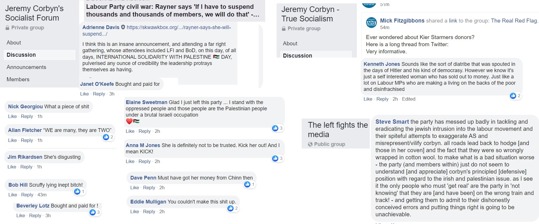 Flitting between Corbynist forums, I’m not always able to get an impression about which groups are more intensely antisemitic than others and besides, the groups have a fluidity, often very much affected by the administrators. One forum was highly antisemitic, then somebody left and the remaining administrator was pro-Starmer. The group is still well to my left but it isn’t antisemitic.