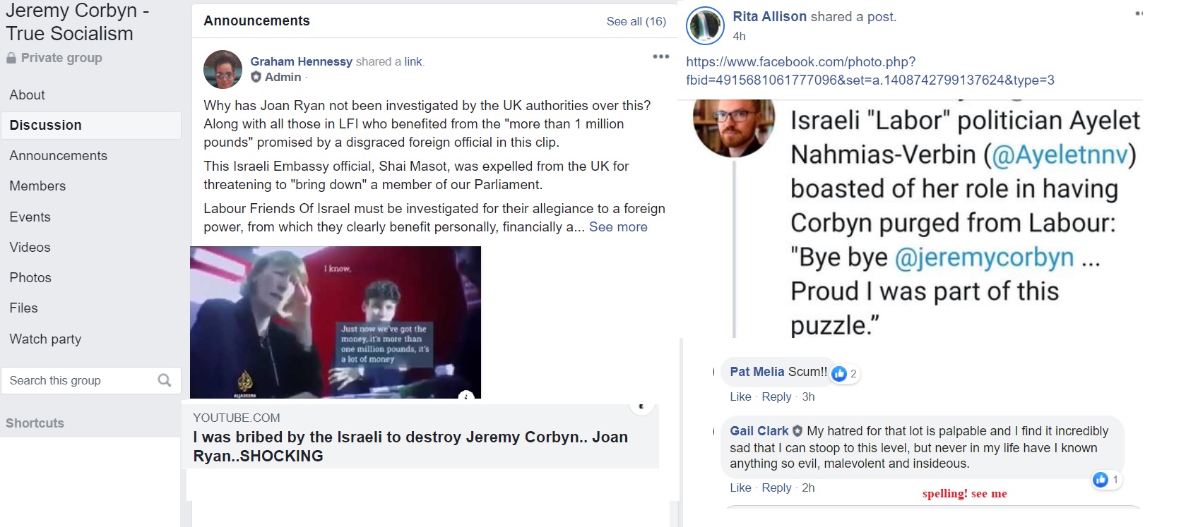 Members of the Corbynist forums react with fury (the same views are found on Twitter). I will not even attempt to describe their comments but invite you to read them. Targets today, 29 November, are Angela Rayner and the left wing Labour MP Nadia Whittome. Everyone who backs Keir Starmer or is supportive of Jews, is said to have accepted the Israeli shekel.