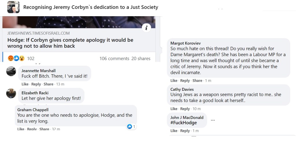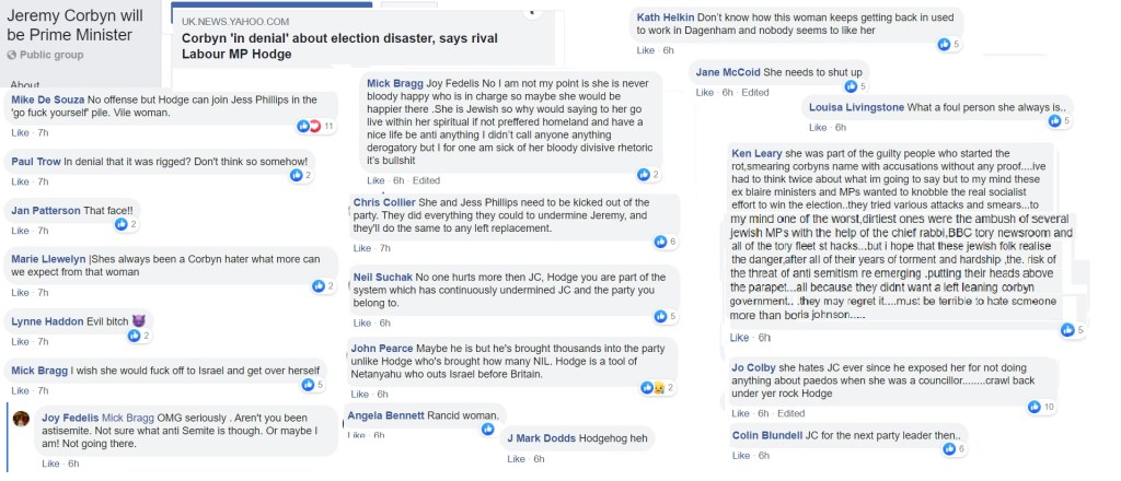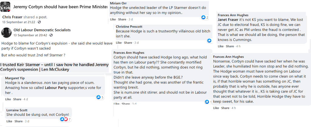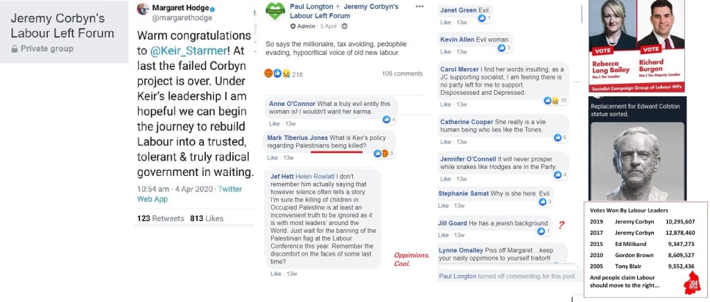 I would not want you to think that ‘Recognising’ differs from other Corbynist forums or that last nights contributors were exceptionally acrimonious. The vindictive malevolence exceeds in quantity anything I can display here, but here are some screen shots from other forums, on other days, all since the General Election of December 2019.