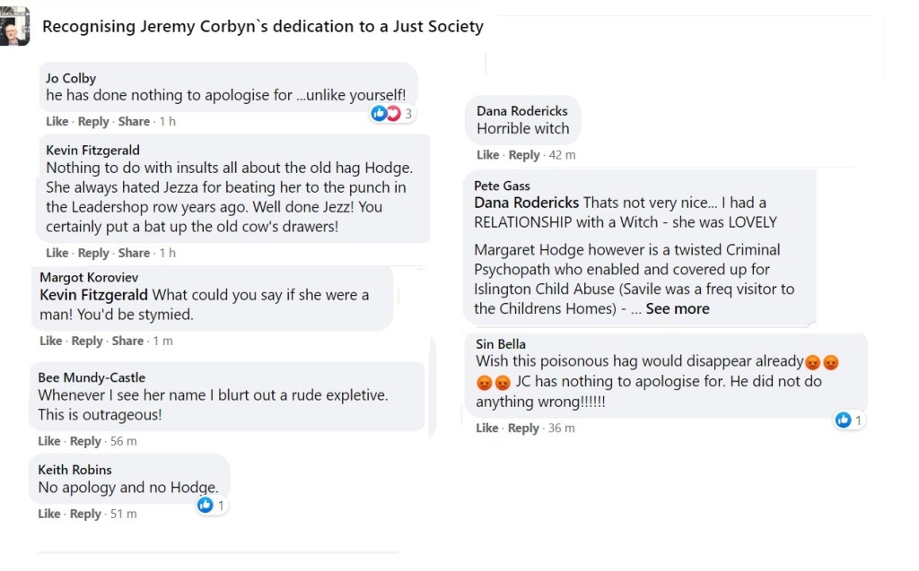 Last night, as the Prime Minister was in Brussels with a no deal Brexit hanging in the balance, I browsed one of the Corbynist forums on Facebook: ‘Recognising Jeremy Corbyn’s Dedication to a Just Society,’ moderated by Caroline Tipler. Originally the group was called ‘Jeremy Corbyn Leads Us to Victory’ but it has undergone more than one name change since the General election of 2019. One subject dominated the forum: Margaret Hodge. There was more than one post about Dame Margaret and one of them attracted well over a hundred comments as the comrades vied to see who could express the greatest hatred.