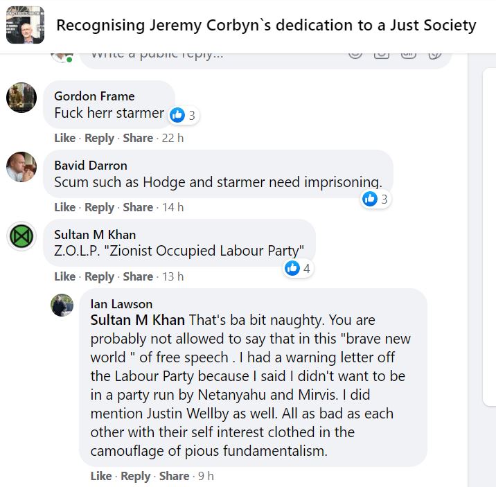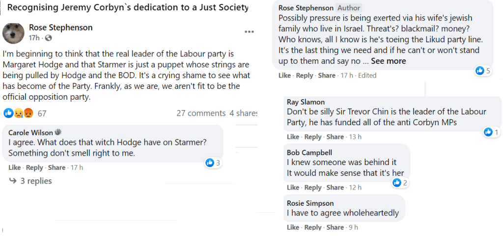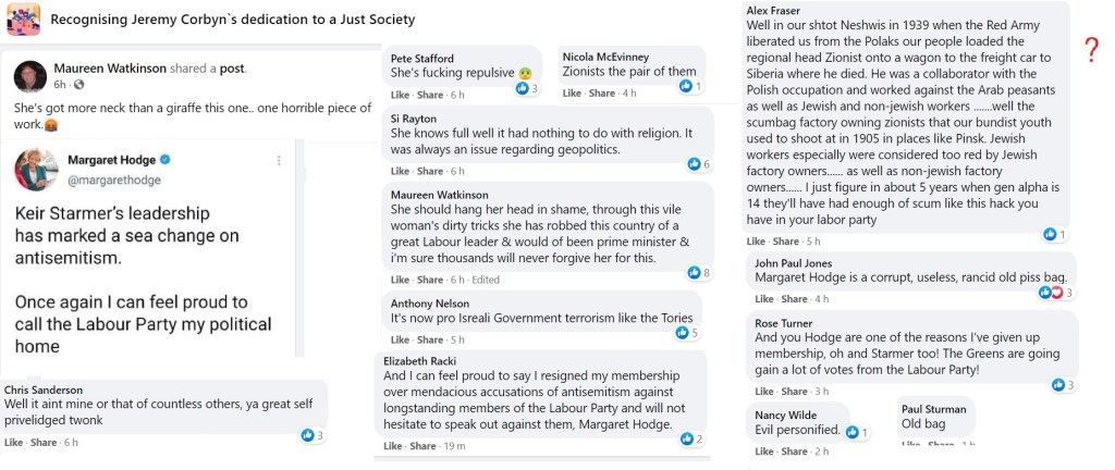 Even the careful comrades are often transparently antisemitic in their identification of British Jews as ‘a foreign power.’ Those who are not careful – well, in the screen shots below, you will get a glimpse of their vocabulary.