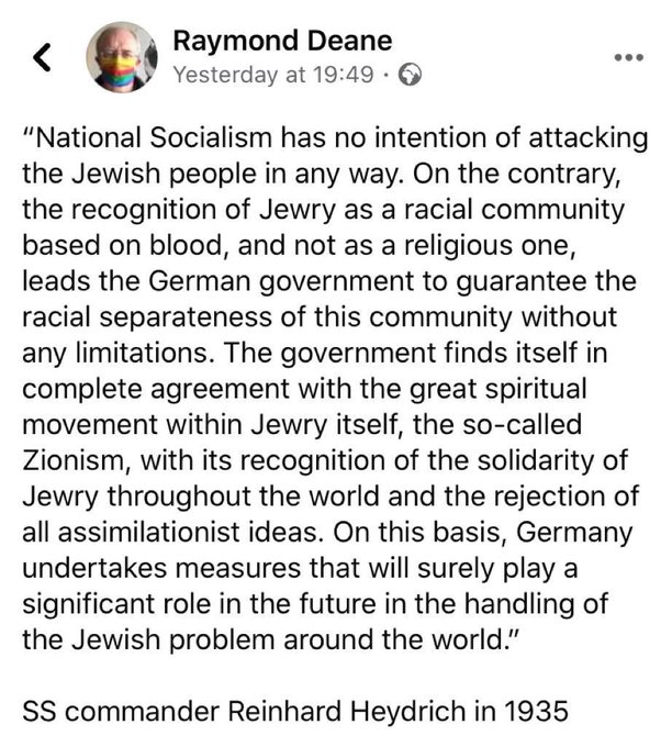 Indeed, any forum which exists to magnify and sanctify the name of Jeremy Corbyn will include hardcore antisemitism. I could add to the list Truthers Against Zionist Lobbies, but they seem to be in a depleted state, nearly all of their recent posts coming from group admins Rita Allison and Marino Robles.