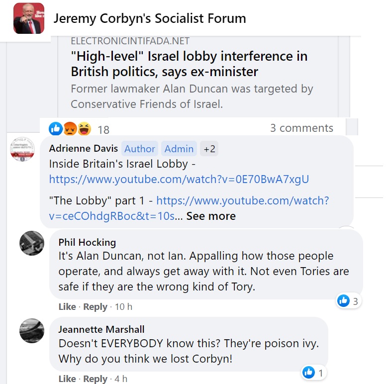 They seem impervious to reason. Some of my friends have joined the Corbynist groups to confront the antisemites in their lair but they get ejected before long. You can see them sometimes in my screen shots, accused of being Zionist trolls.