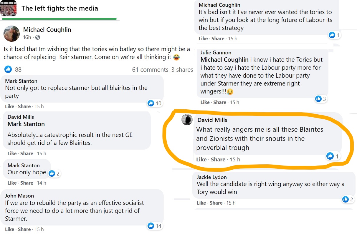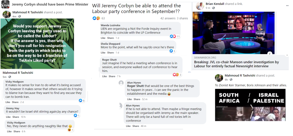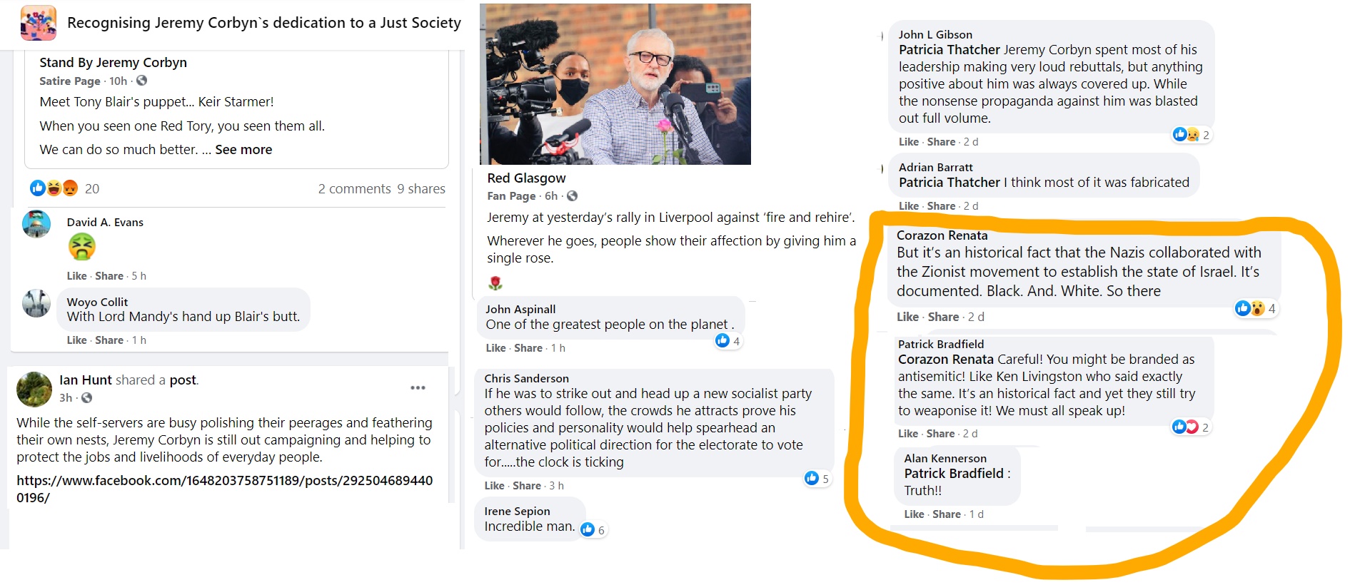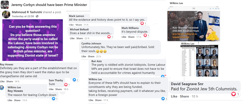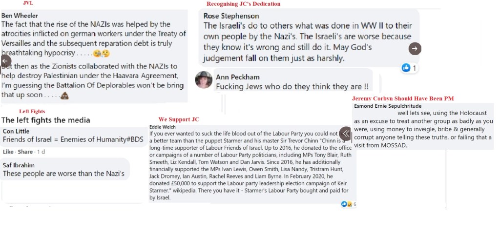 Anyone who follows me on Twitter knows what to expect: a tedious, apparently never-ending stream of screen shots from Corbynist groups on Facebook, exhibiting characteristics usually associated with the far right, of anti-Jewish racism, occasional Holocaust denial, 9/11 revisionism and incitement to hatred.