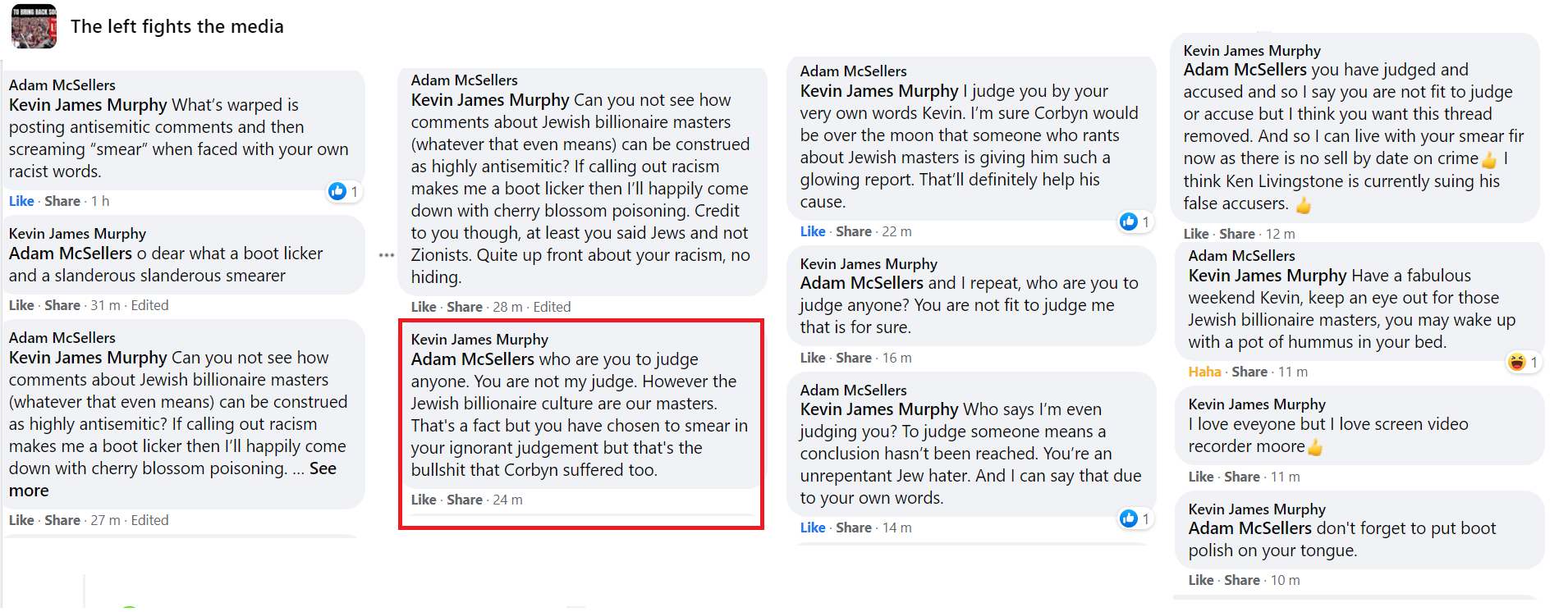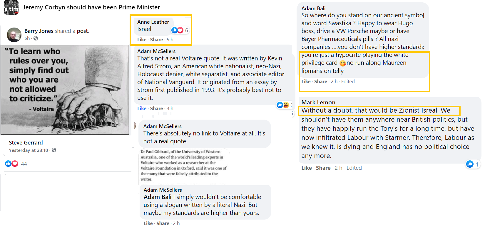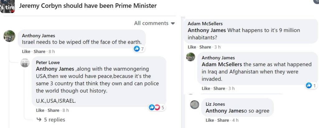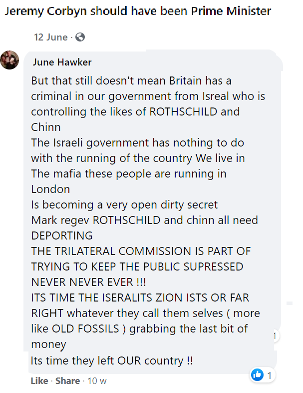 Anyone who follows me on Twitter knows what to expect: a tedious, apparently never-ending stream of screen shots from Corbynist groups on Facebook, exhibiting characteristics usually associated with the far right, of anti-Jewish racism, occasional Holocaust denial, 9/11 revisionism and incitement to hatred.