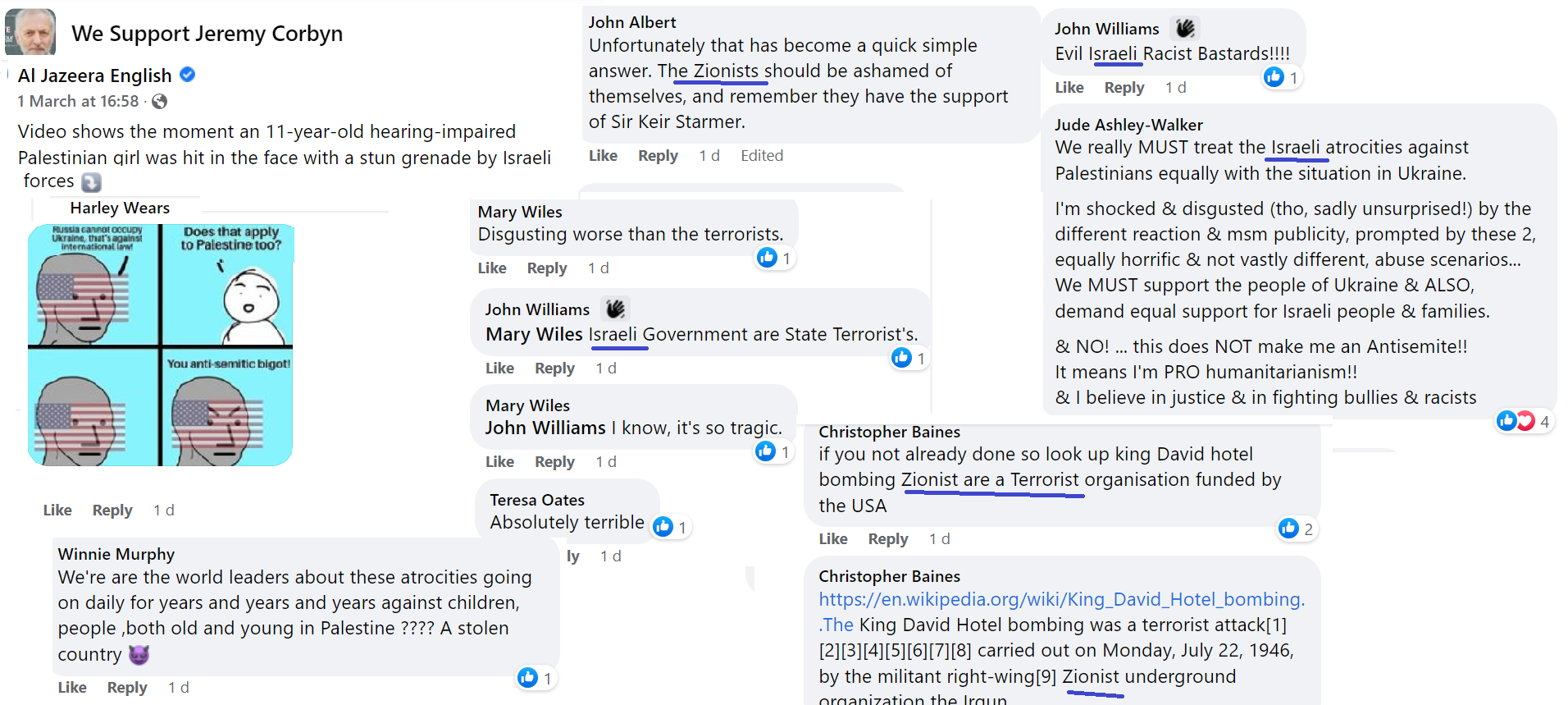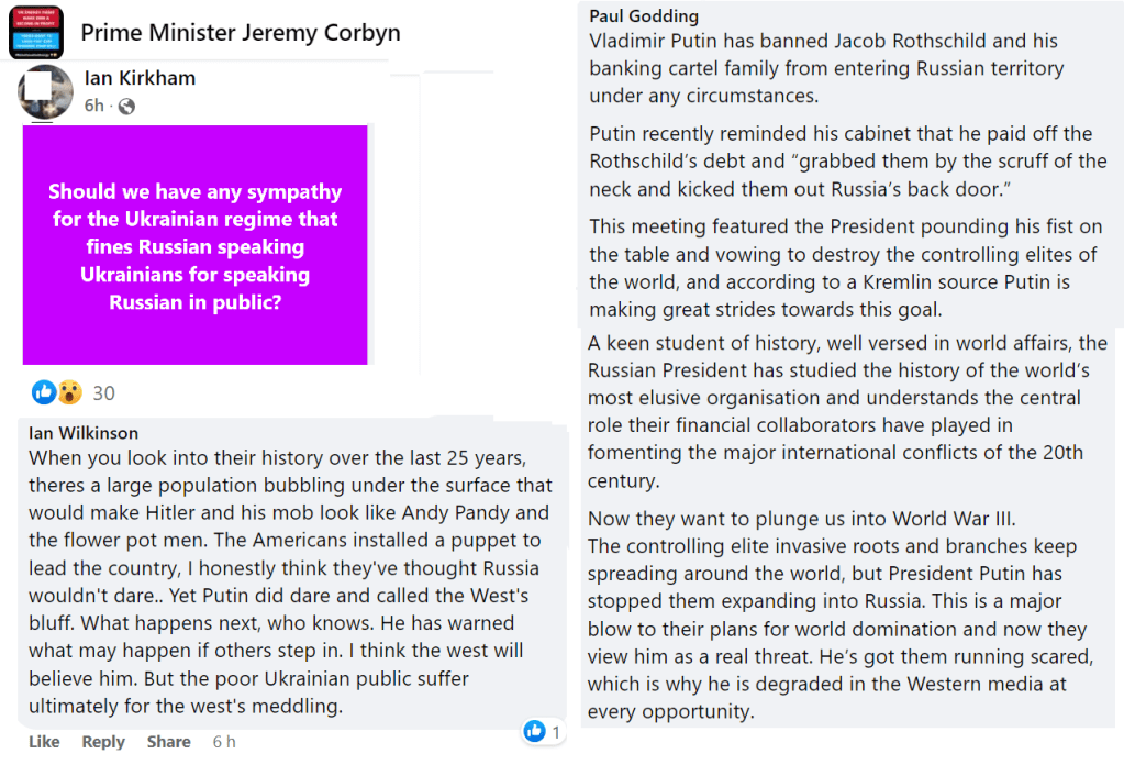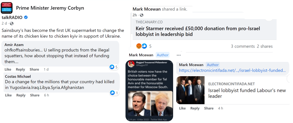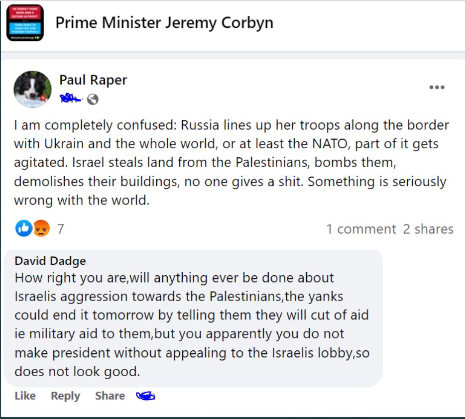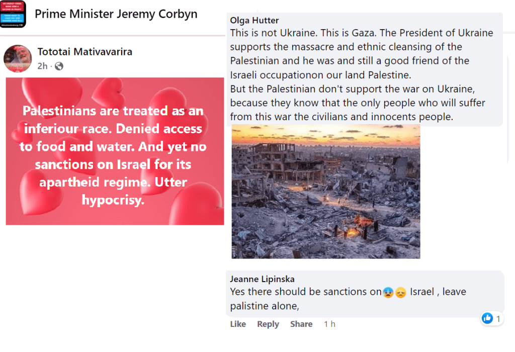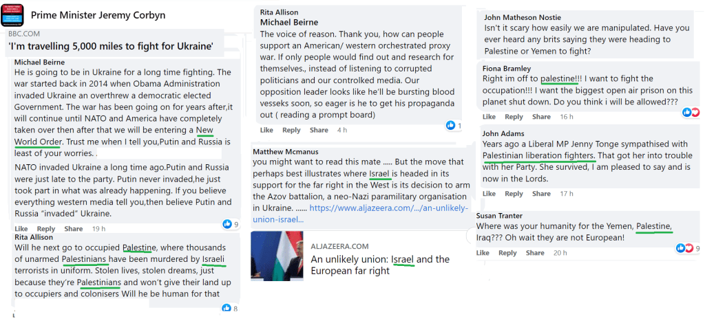 Corbynist social media is now focused on Israel; on Israel being worse or on sympathy for Ukraine being unfair when people don’t respond as sympathetically to Palestinians.