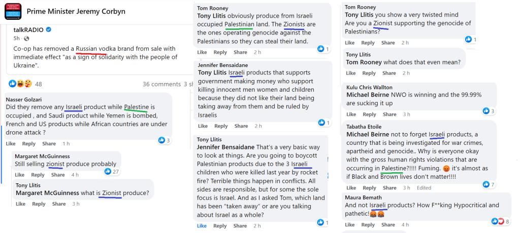 An original post about vodka being removed from Co-op shelves triggers nothing on a Corbynist forum apart from ‘What about Zionist produce?’