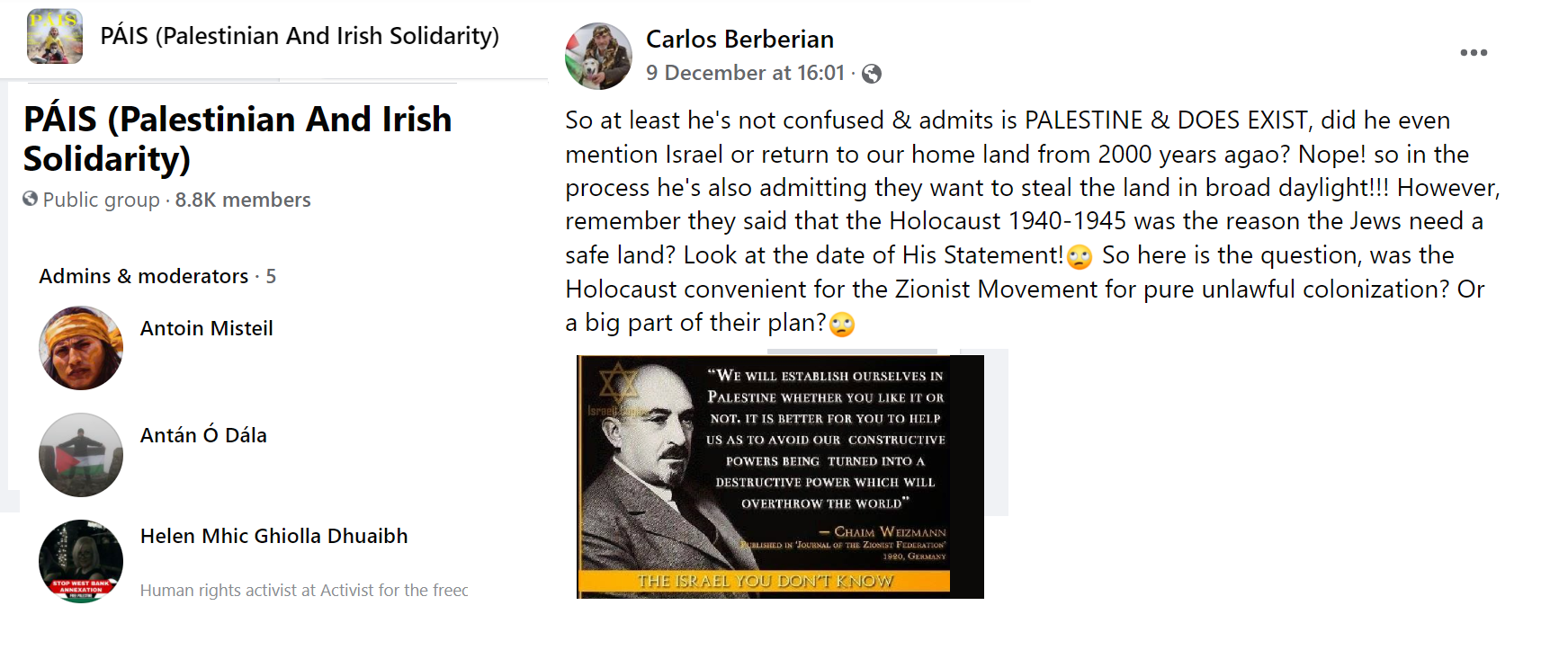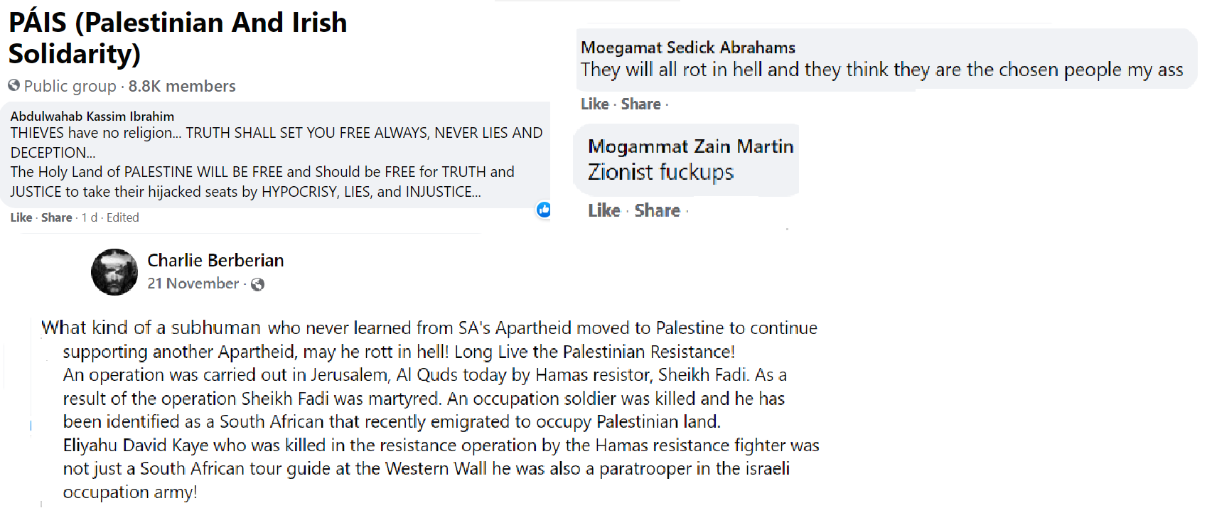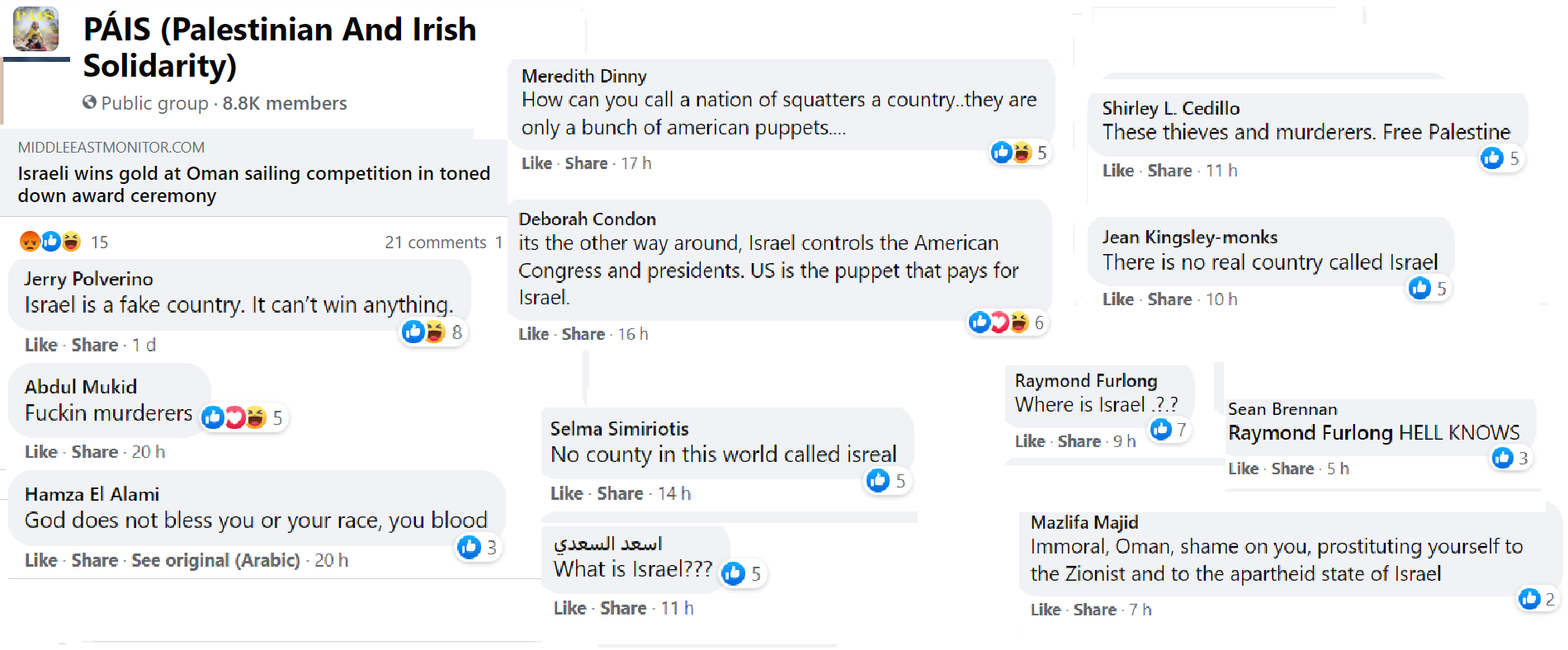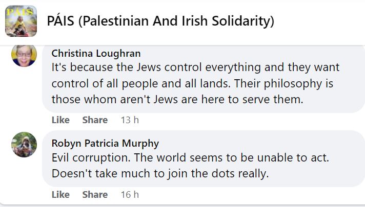 I have been following this particular Pais group (there are others) for about four months. I never open the page without foreboding and never fail to be shocked by the bigotry, extremism and anti Jewish obsession.