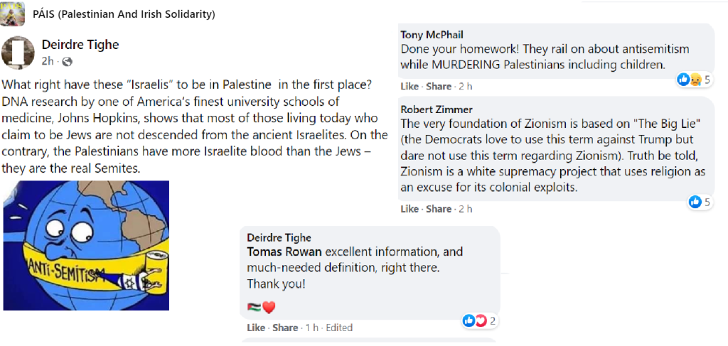 PAIS does not swerve from its anti Israel mission. Occasionally, Facebook deletes posts for false information, but one has to report the post for this to happen. Mostly, reporting has little effect but still, it’s better that some of their comments get reported, even when Facebook does nothing.
