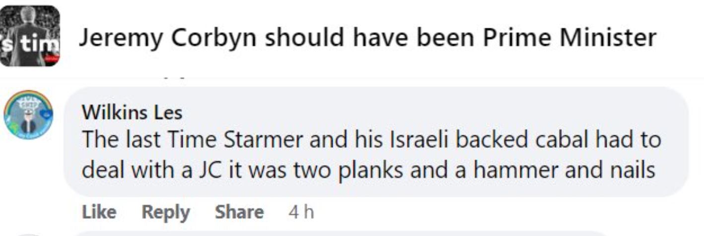 This way of talking about Corbyn as a godlike figure is not merely inappropriate or amusing. His opponents are invariably fingered as being Judas or Herod or Pilate or Caiaphas. Thus the Corbynist forums on Facebook become a veritable Oberammergau of Judenhass, with Israel often held responsible for Labour’s bad election result in 2019 or, by way of synecdoche, Keir Starmer, Margaret Hodge or Trevor Chinn stand in for the State of Israel and indeed for Am Yisrael, the people of Israel.