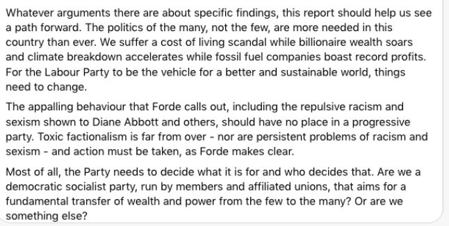 I brace myself for the misreporting and wishful thinking which will be printed and posted in respect of the Forde report. Already I have been embroiled on Twitter and saw fit to highlight the sentence which the Corbynists will not want to read.
