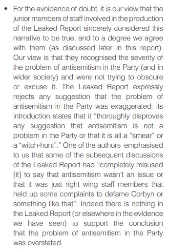 According to Forde, the authors of the Leaked Report believed that they were misrepresented as minimizing the problem of antisemitism, which they considered rife in the party membership. They rejected the view that it was exaggerated or ‘a smear’. When I read the Leaked Report in April 2020, I saw that they acknowledged the extent of the problem and I was sorry to see assertions on Corbynist social media that it proved – as Mr Maginn likes to say – ‘it was a scam.’