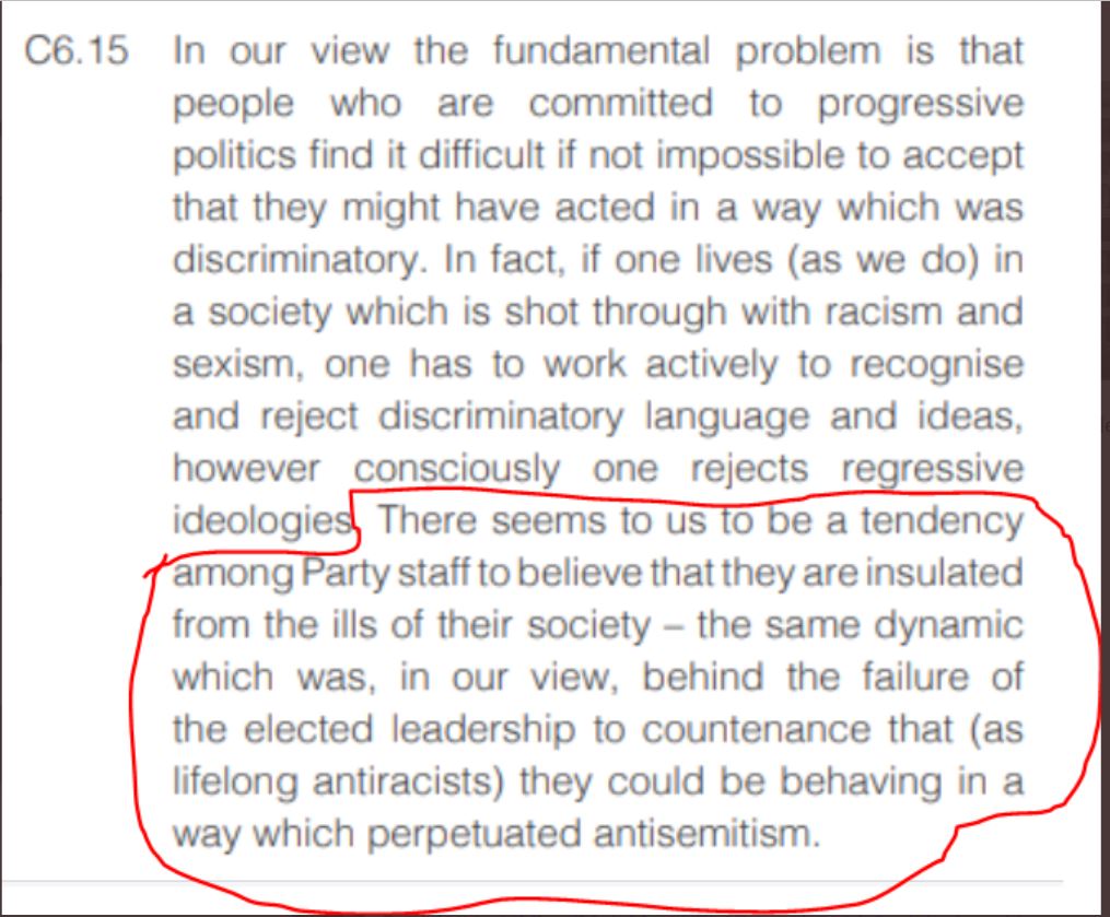 The report faults both right and left factions of the Labour Party for considering themselves above racism and antisemitism. It points out that an anti racist record does not make one immune from prejudice, as shown by Mr Corbyn’s actions in perpetuating a culture of antisemitism, despite his perception of himself as a lifelong anti-racist.