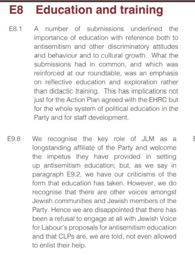 The most disappointing paragraph to me in the Forde Report suggested that JVL be included with JLM in providing education about antisemitism. I have written elsewhere about JVL attracting a significant number of antisemitic supporters and why I think their intense anti Zionism clouds their perception of classic anti Jewish tropes.