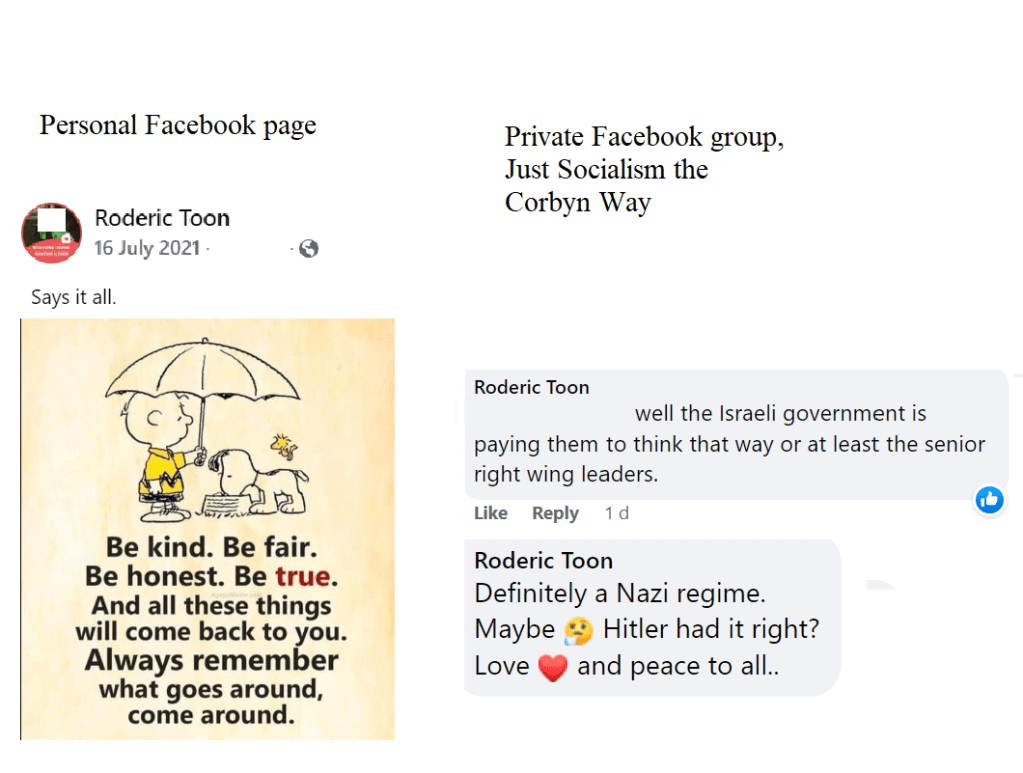 Meanwhile I, the stalker, am so accustomed to seeing extreme antisemitism, unopposed by admins or comrades, permitted on social media platforms, that I am not surprised when I see kindly references to Hitler from the self-styled Left.