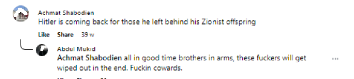 Meanwhile I, the stalker, am so accustomed to seeing extreme antisemitism, unopposed by admins or comrades, permitted on social media platforms, that I am not surprised when I see kindly references to Hitler from the self-styled Left.
